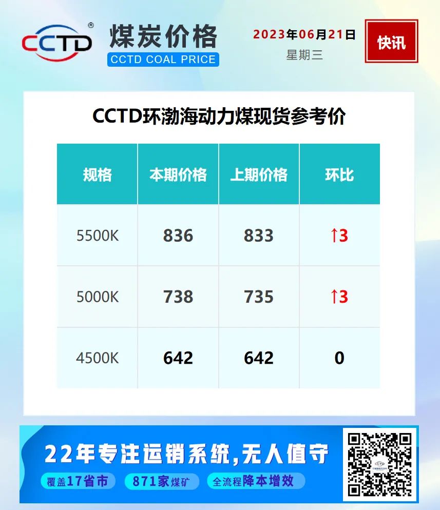 CCTD監(jiān)測(cè)數(shù)據(jù)顯示,6月以來(lái)環(huán)渤海動(dòng)力煤現(xiàn)貨價(jià)格運(yùn)行在759-833元/噸,均價(jià)790元/噸。其中,759元/噸的價(jià)格低點(diǎn)出現(xiàn)在6月13日,之后受部分剛需采購(gòu)需求釋放、優(yōu)質(zhì)現(xiàn)貨資源邊際供應(yīng)不足以及進(jìn)口煤性價(jià)比收縮等因素影響,價(jià)格迎來(lái)反彈,截至6月21日漲至836元/噸。