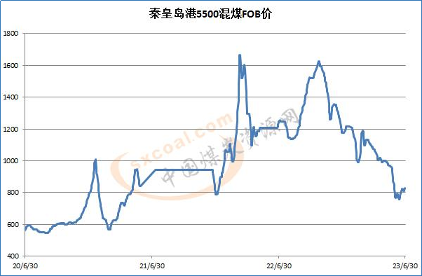 而造成這一情況的主要原因就是煤炭價(jià)格行情的持續(xù)走弱。中國煤炭資源網(wǎng)數(shù)據(jù)顯示,2022年10月份以來,秦皇島港Q5500動(dòng)力煤價(jià)格從1628元/噸降至目前的830元/噸,降幅超49%,幾近腰斬。