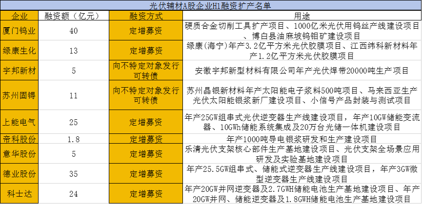 為了整軍備戰(zhàn),A股光伏企業(yè)選擇了繼續(xù)融資,據(jù)統(tǒng)計今年上半年超過四十相關(guān)家企業(yè)通過定增等渠道融資超1600億元。