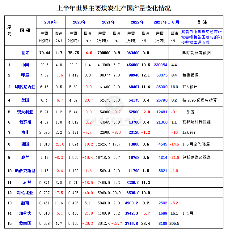 今年上半年,全球煤炭產(chǎn)量繼續(xù)保持2021年以來的持續(xù)增長態(tài)勢,且仍如去年一樣,主要增加在中國、印度和印尼等三個世界排名頭部的產(chǎn)煤國,而一些煤炭出口國及歐盟的煤炭產(chǎn)量下降,美國產(chǎn)量也下滑。